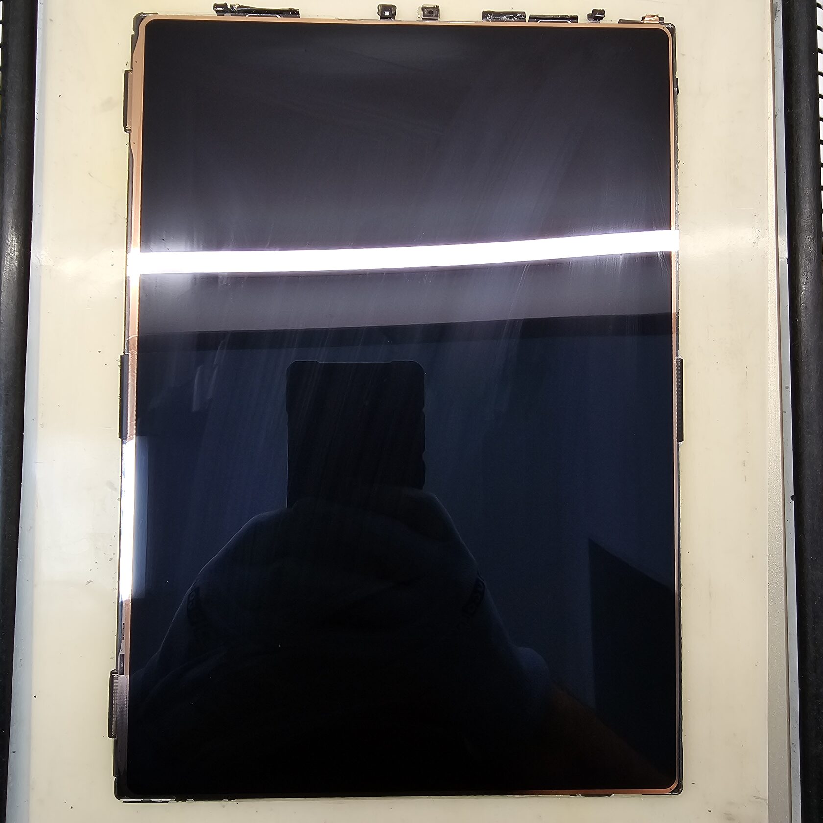 Идеально чистая матрица Liquid Retina, готовая к ламинированию(и оператор в отражении)). Полное отсутствие пыли, ворсинок или остатков клея будет гарантирован только в беспылевой зоне— это самый важный фактор для получения заводского качества замены стекла iPad Pro 11.