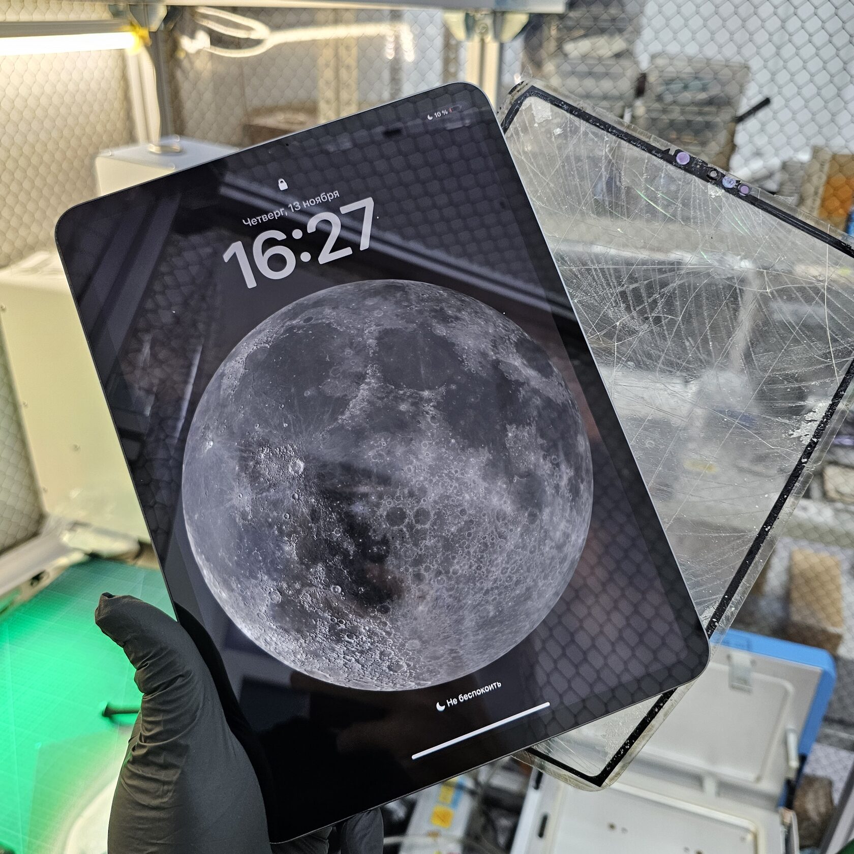 Замена стекла на iPad Pro 11 — это сложнейший процесс, который в Mr. Glass доведен до совершенства. Мы используем передовое оборудование (лазер, пресс, автоклав) и технологии (полимерная фиксация трещин) для того, чтобы: